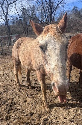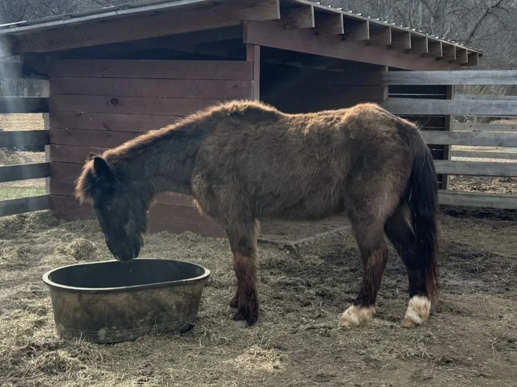 Kevin is a pony gelding, likely roughly 30 years of age, who came to us in late January 2026. He will be available for adoption once he has gained some weight.