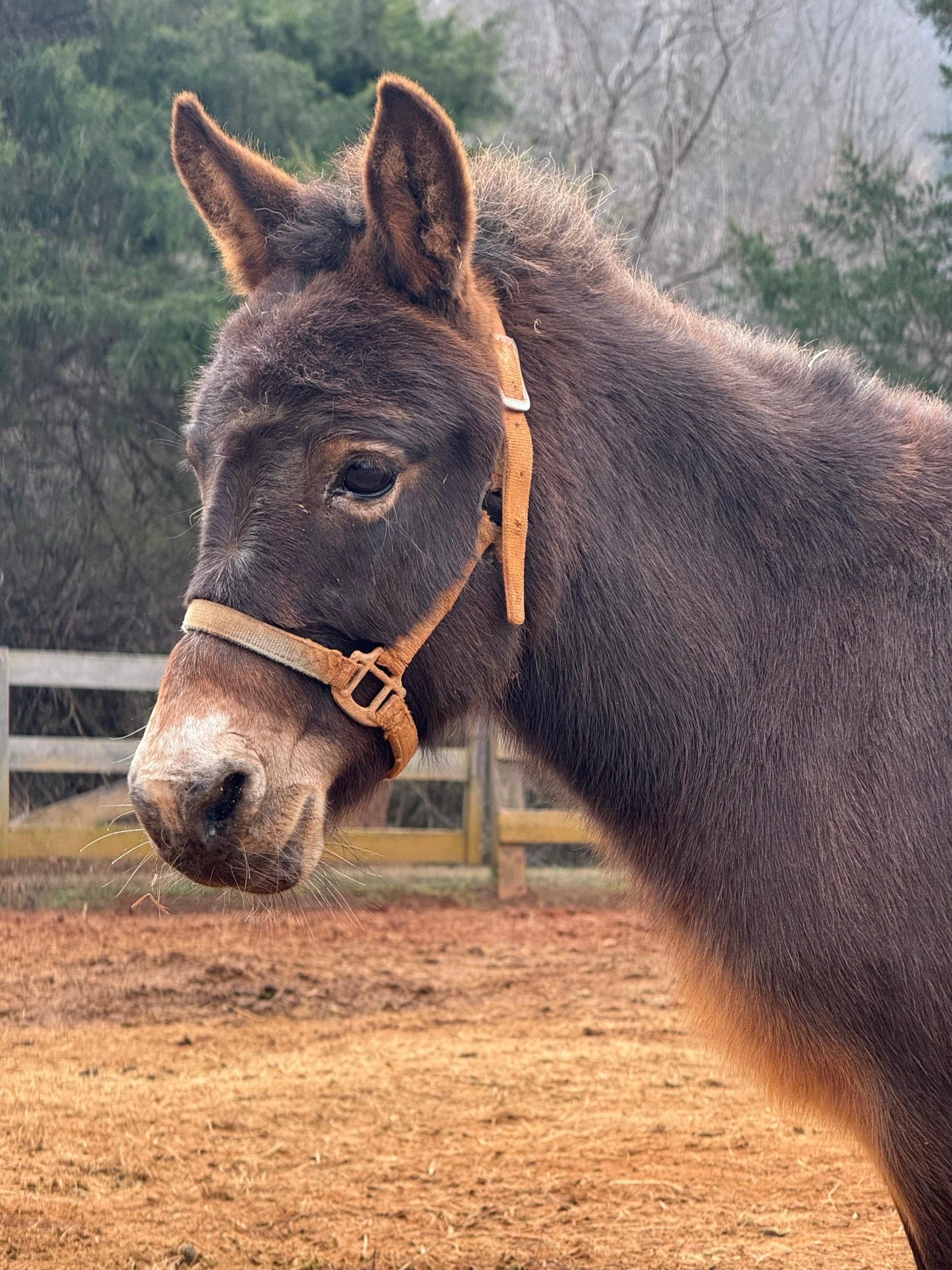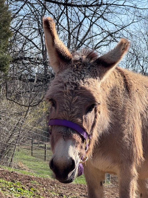Bonita is a mini mule who is very scared of people. She has come a long way since arriving at Hope’s Legacy in the fall of 2023 but still is not able to be handled easily.