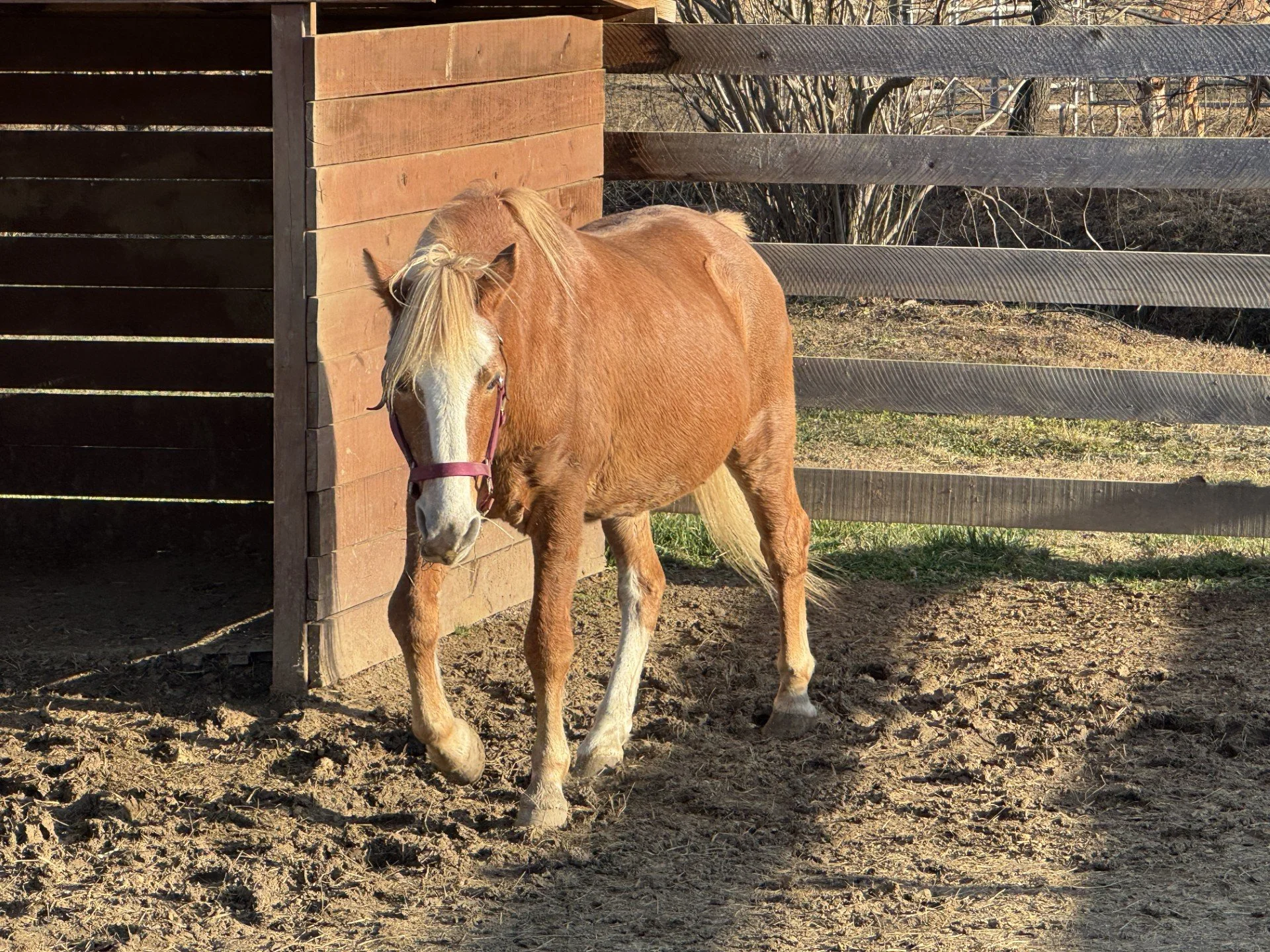 This handsome and slightly spicy stallion arrived in early January 2026. He will be available for adoption after being castrated and once he has a little more work on being handled. He is currently not very trusting of people.
