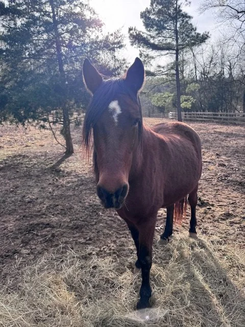 Fina is a 30ish year old mare who came to us recently when her owner was no longer able to care for her. Fina is available as a non-riding companion.