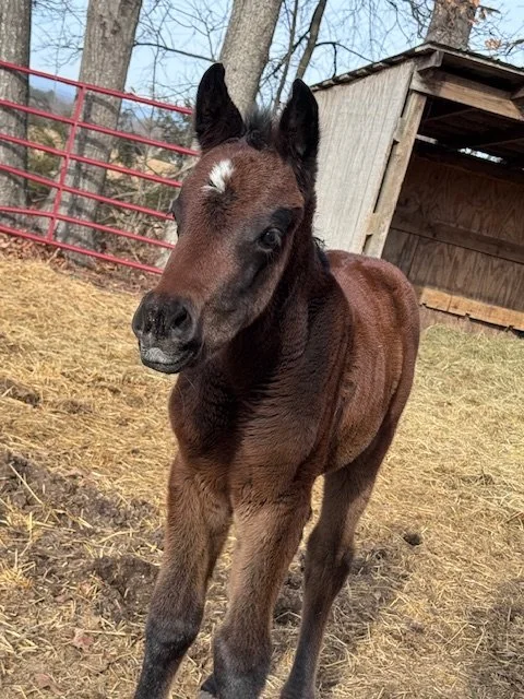 This sassy little Arabian filly was born on December 23, 2025. She will be available for adoption once she is old enough to be weaned.