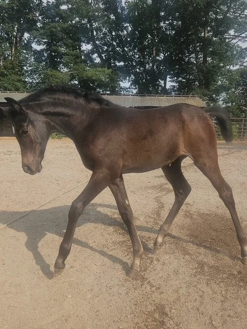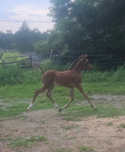 Bullseye is an Arabian filly who was born on March 25, 2025. She was bucket raised and is very into people. Bullseye is currently working on her halter training. Bullseye will need an adopter who has previous experience raising and training foals or has a trainer that will be fully involved in helping raise and train Bullseye.