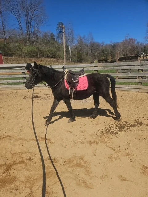 Majik is a 25 year old gaited pony. He has great manners and loves a good groom and just spending time with people. He is good for the vet and farrier. He was a child’s pony in his younger years and then spent time just hanging out in a field for the last several years. Majik is trained to ride but is a little rusty around the edges. He is working with out resident trainer to knock the dust off. Majik does have some missing teeth and cannot have regular hay but he can eat grass, chaff (chopped hay) and grain just fine.